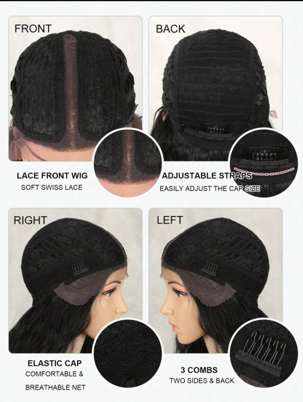 کلاهگیس یک متری حالتدار الیلف قابل حرارت و شستشو جلوتوردار فرق وسط و بالا بشدت با کیفیت مناسب برای استفاده همه