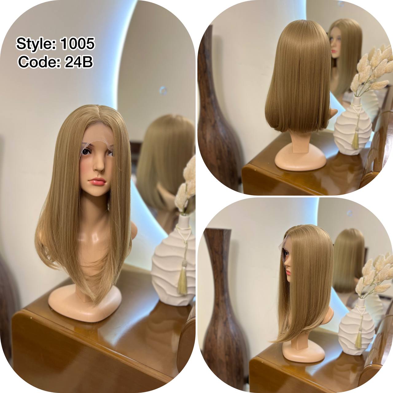 کلاهگیس فرق پوستی جلوتوردار (تور نشانه نوبودن و قیچی میشه) فرق به بالا جمع میشه الیاف قابل حرارت و شستشو